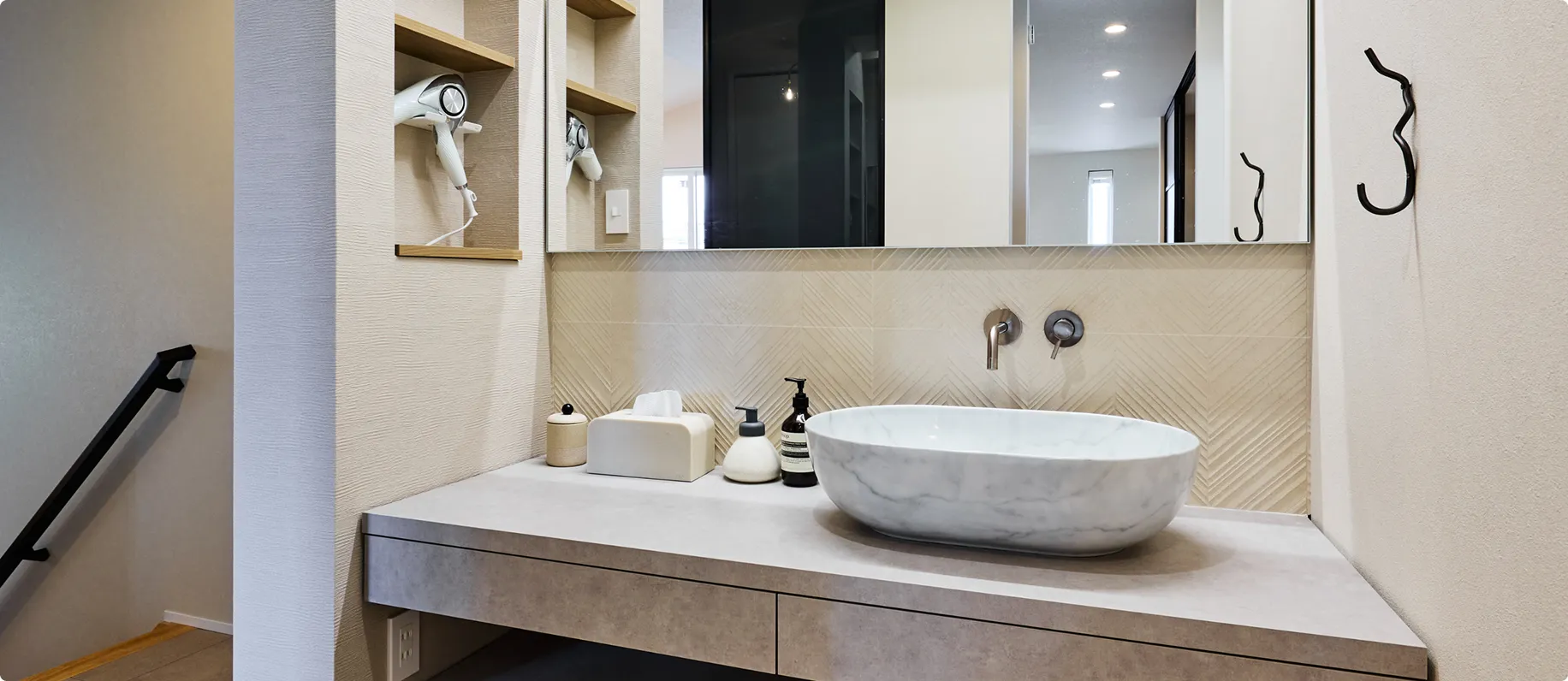 暮らしやすさの中に、さりげない遊び心を添えて。省スペースを活かした造作収納や、日常を少し豊かにする工夫。これらは、美しさと快適さを両立させるもの。プライムライフは、一人ひとりのライフスタイルやこれからの未来まで見据えた住まいを設計します。