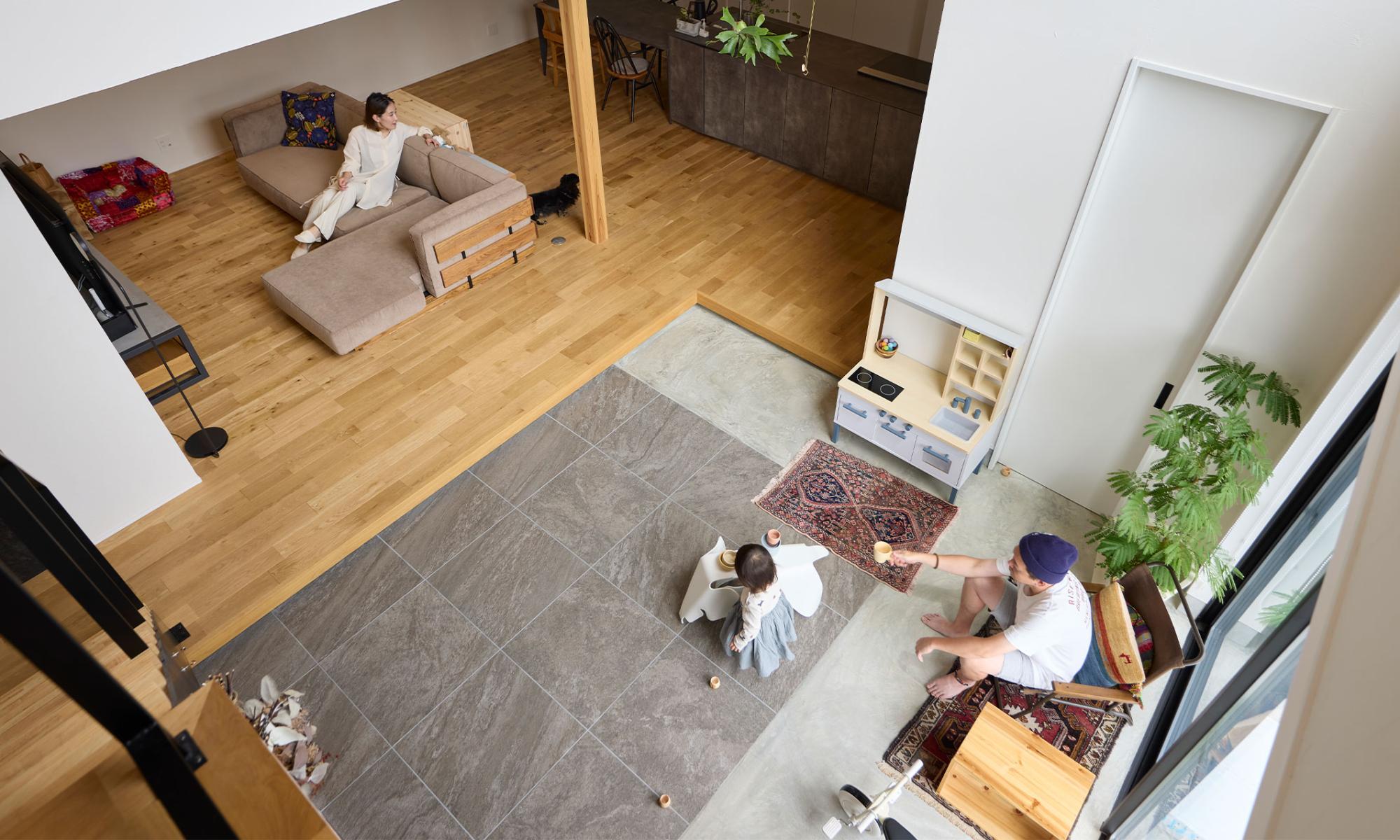 光と笑顔が集まる、土間のある家