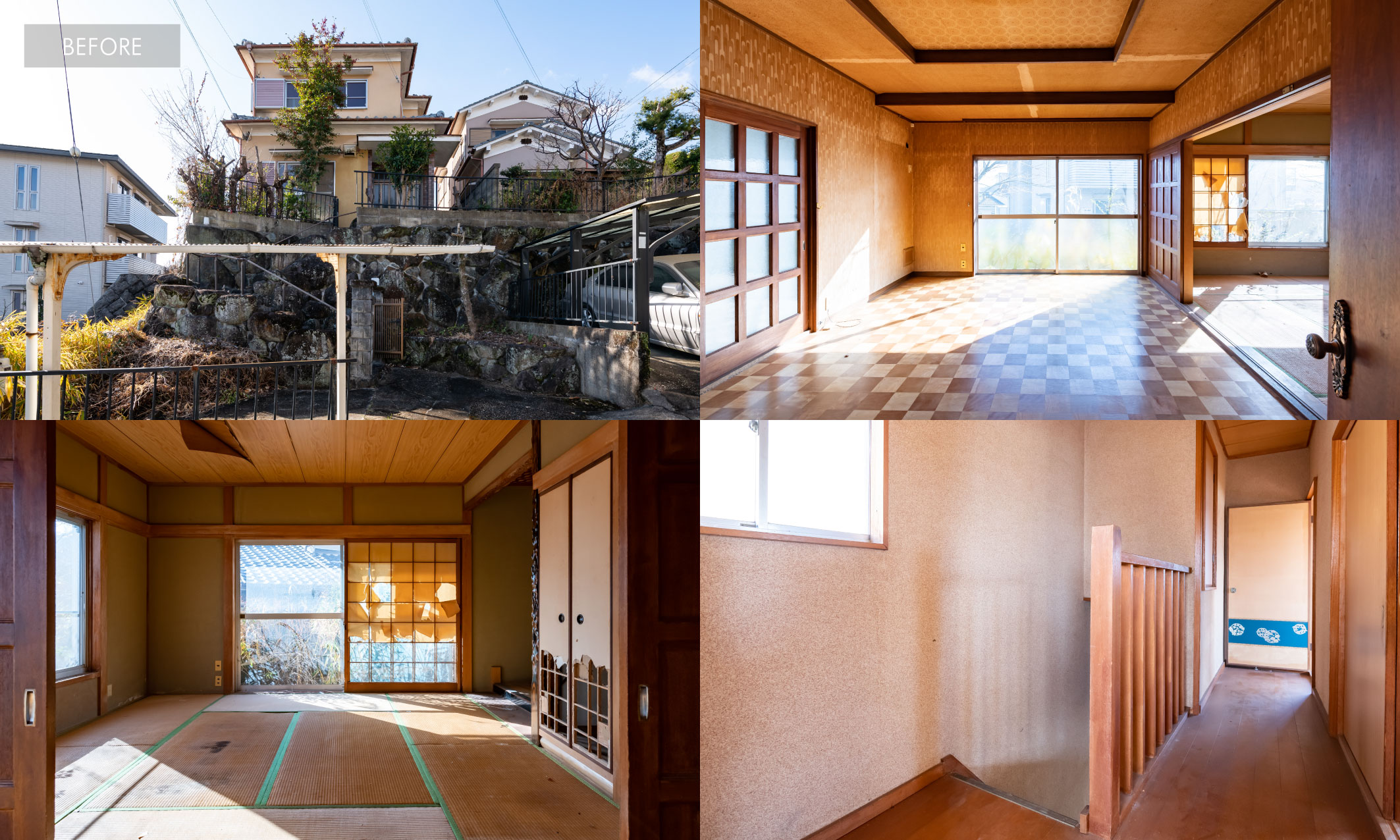 築45年を経過し、かなり古く傷んだ状態でしたが、2階の窓からは、付近の山々が一望できる雄大な景色がありました。