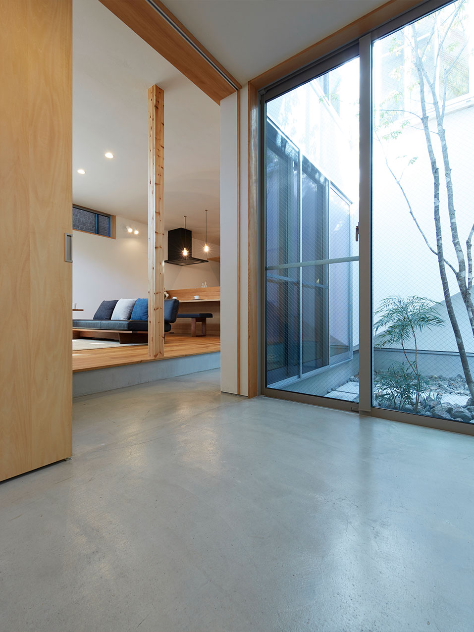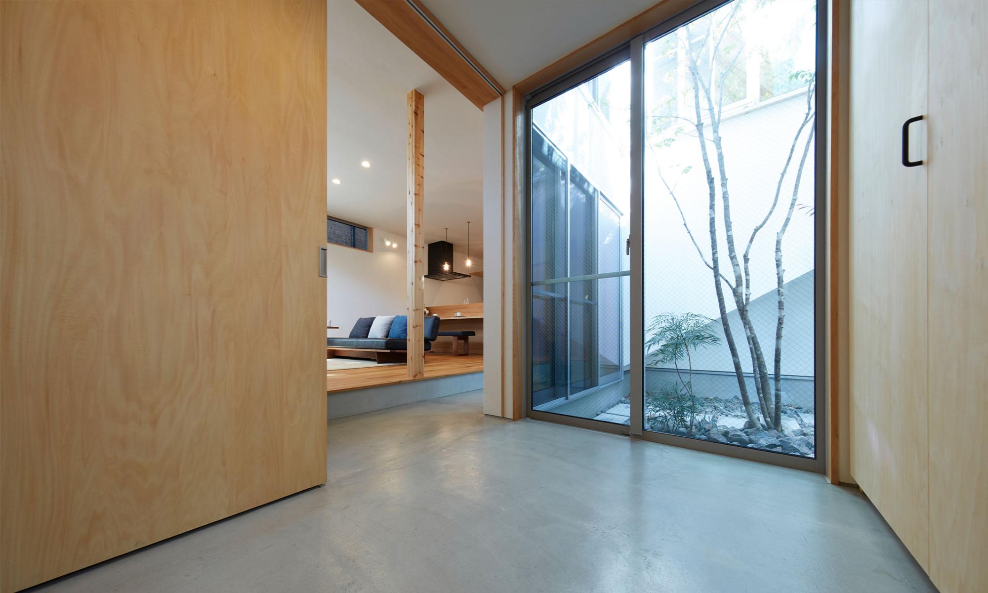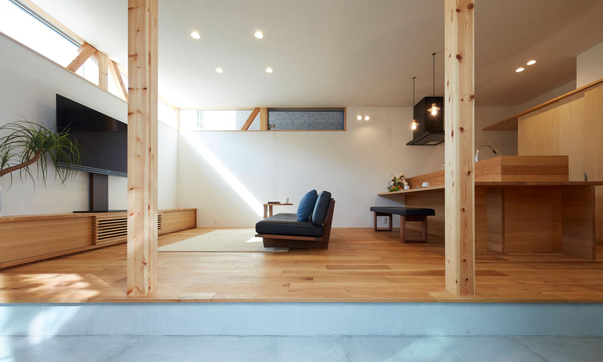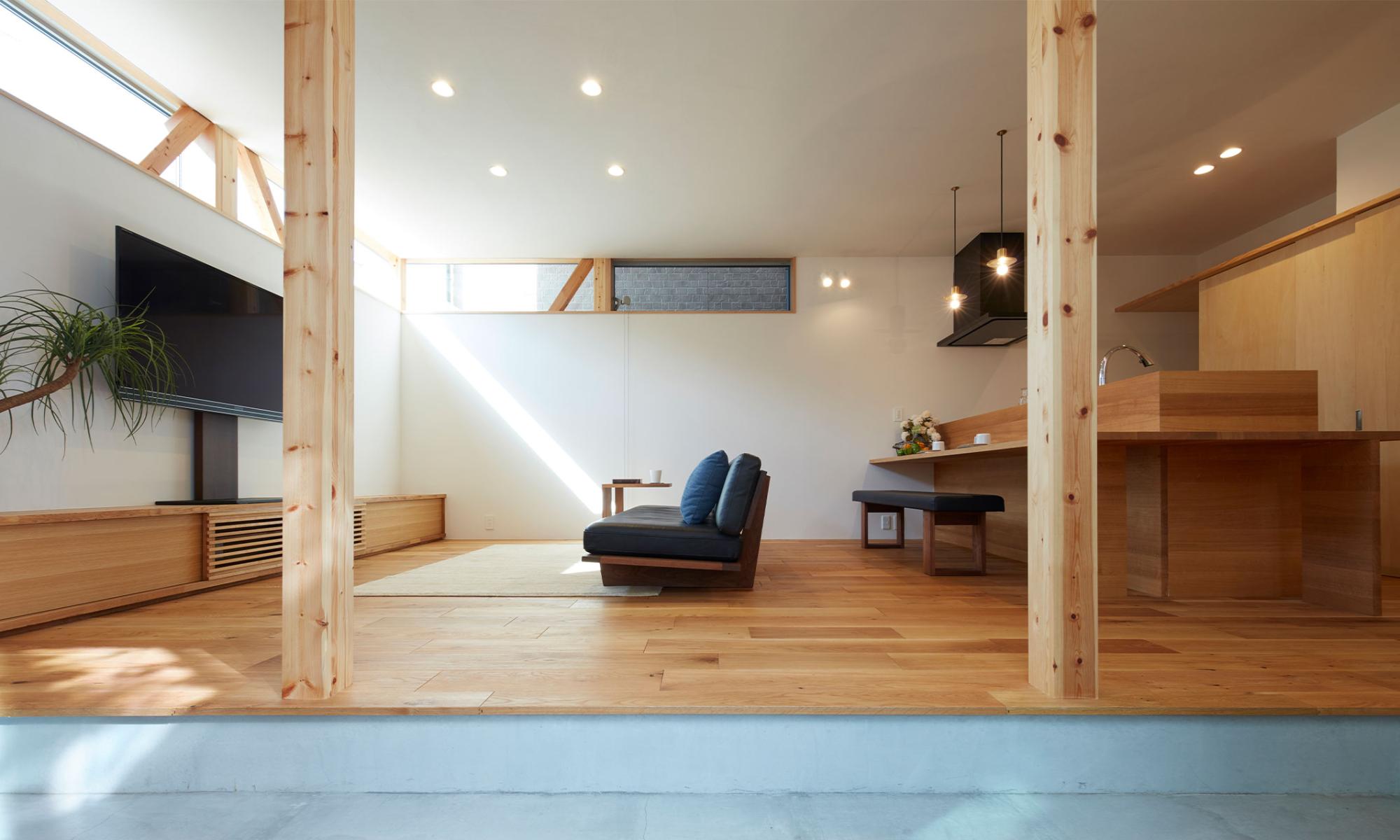 外からリビングまでオールフラットデザイン。ちょっとした料亭に遊びに来た気分になります。