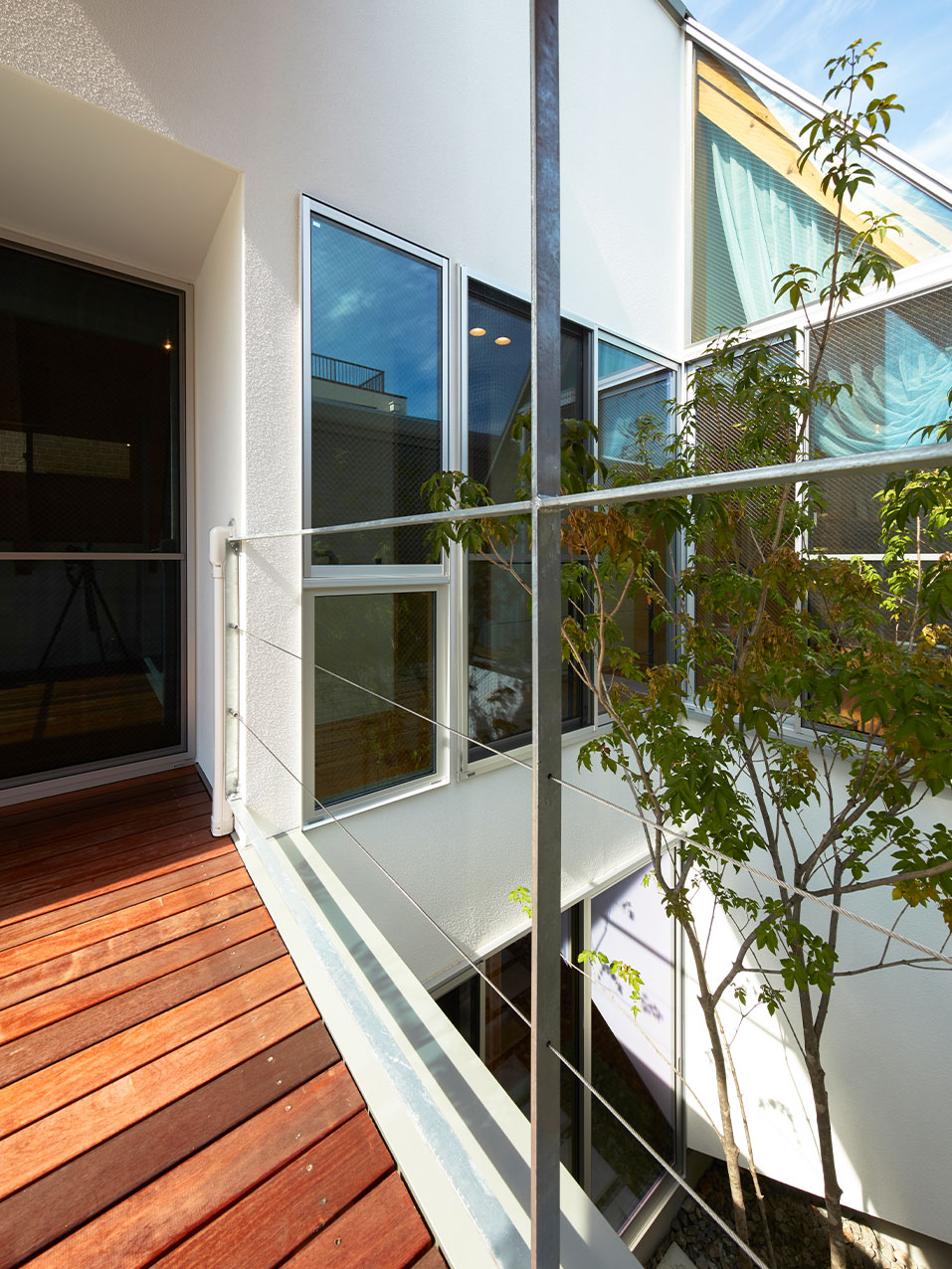 主寝室から伸びるバルコニーはブリッジ型のデッキ。